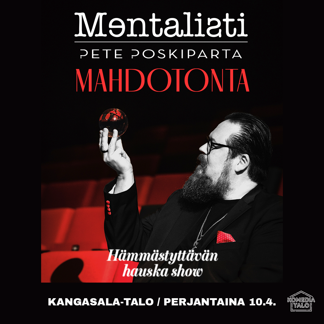 Mentalismia, taikuutta ja komiikkaa yhdistelevä esitys saa katsojat nauramaan ja hämmästymään kerta toisensa jälkeen. Pete Poskiparta on esiintynyt ympäri maailmaa ja palkittu niin kansallisesti Vuoden taikurina 2014 kuin kansainvälisesti arvostetulla Dunninger Memorial Award -pystillä 2019.